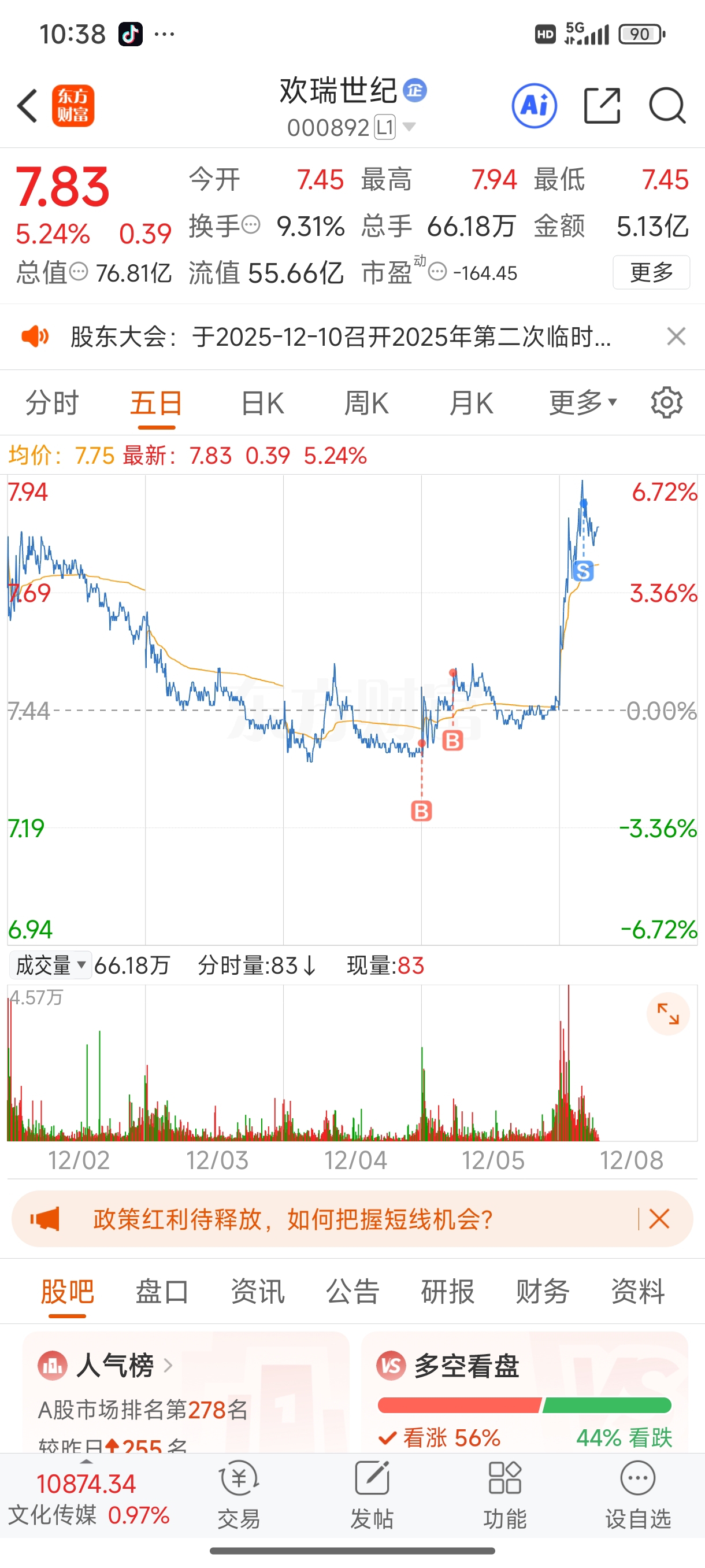 $欢瑞世纪(SZ000892)$ 感谢主力不杀之恩!