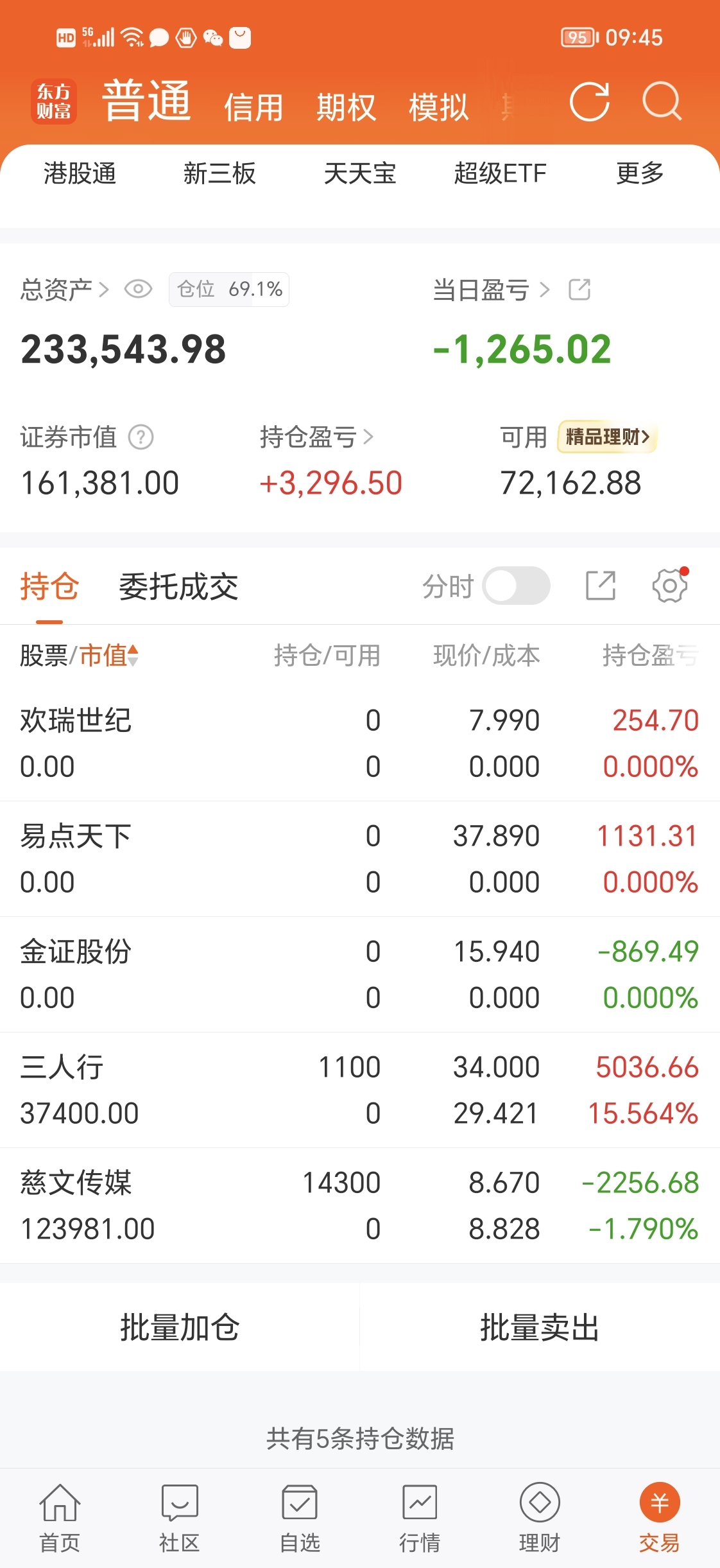 $欢瑞世纪(SZ000892)$ 昨天应该买龙头没有买少赚钱,今天0点卖了欢瑞去慈文传媒亏钱。哎,节奏总是这么难把握