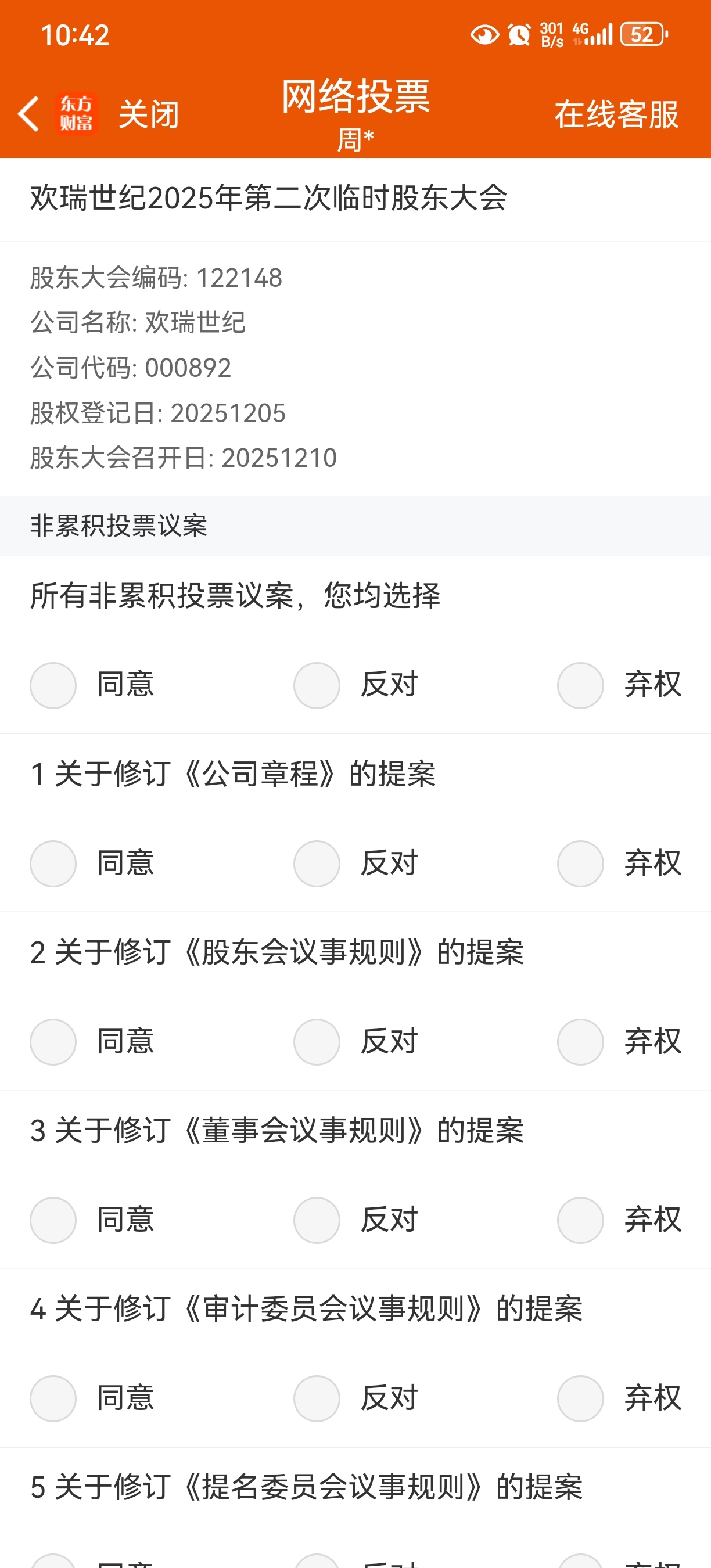 $欢瑞世纪(SZ000892)$ 各位股东,大家快来投票