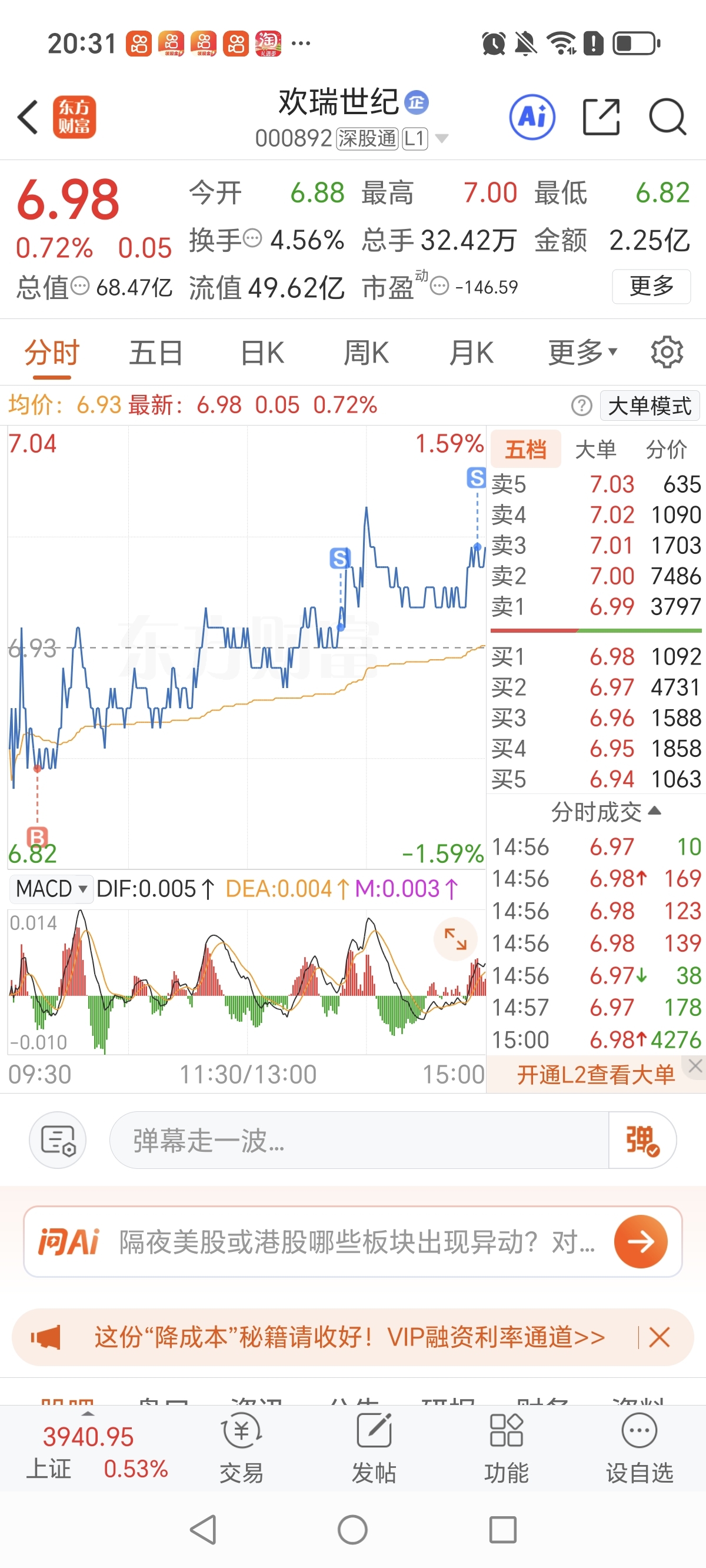 $欢瑞世纪(SZ000892)$ 割肉了三分之二,还剩下一点点