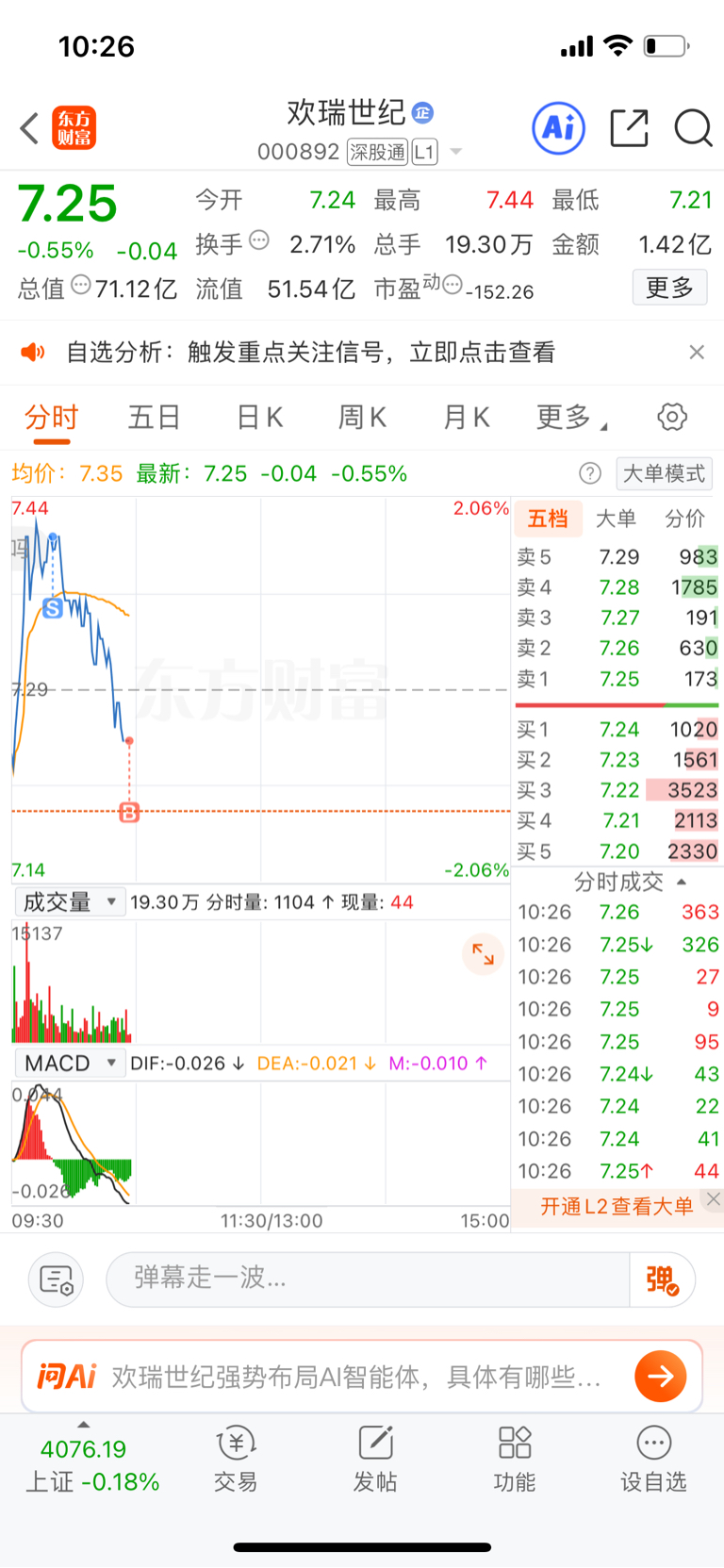 $欢瑞世纪(SZ000892)$ 做T才是安全的