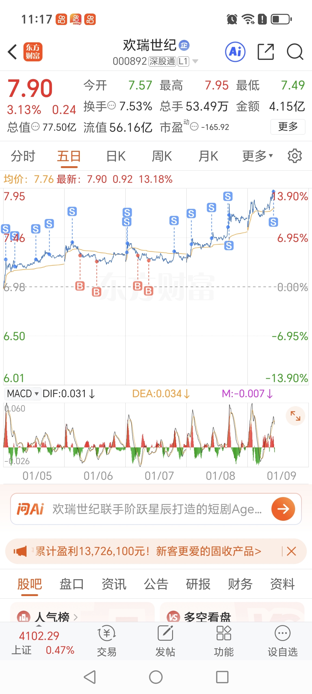 $欢瑞世纪(SZ000892)$ 永不丢底仓