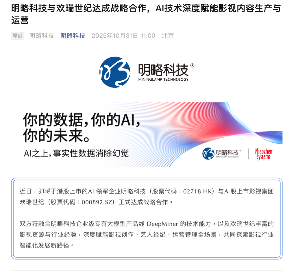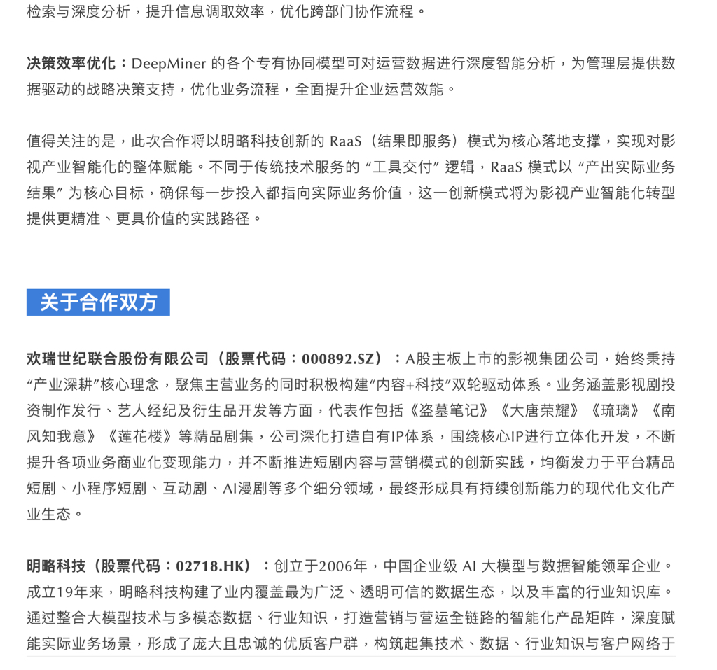 十月底公司就跟明略科技合作了,妥妥的AI营销geo概念股!