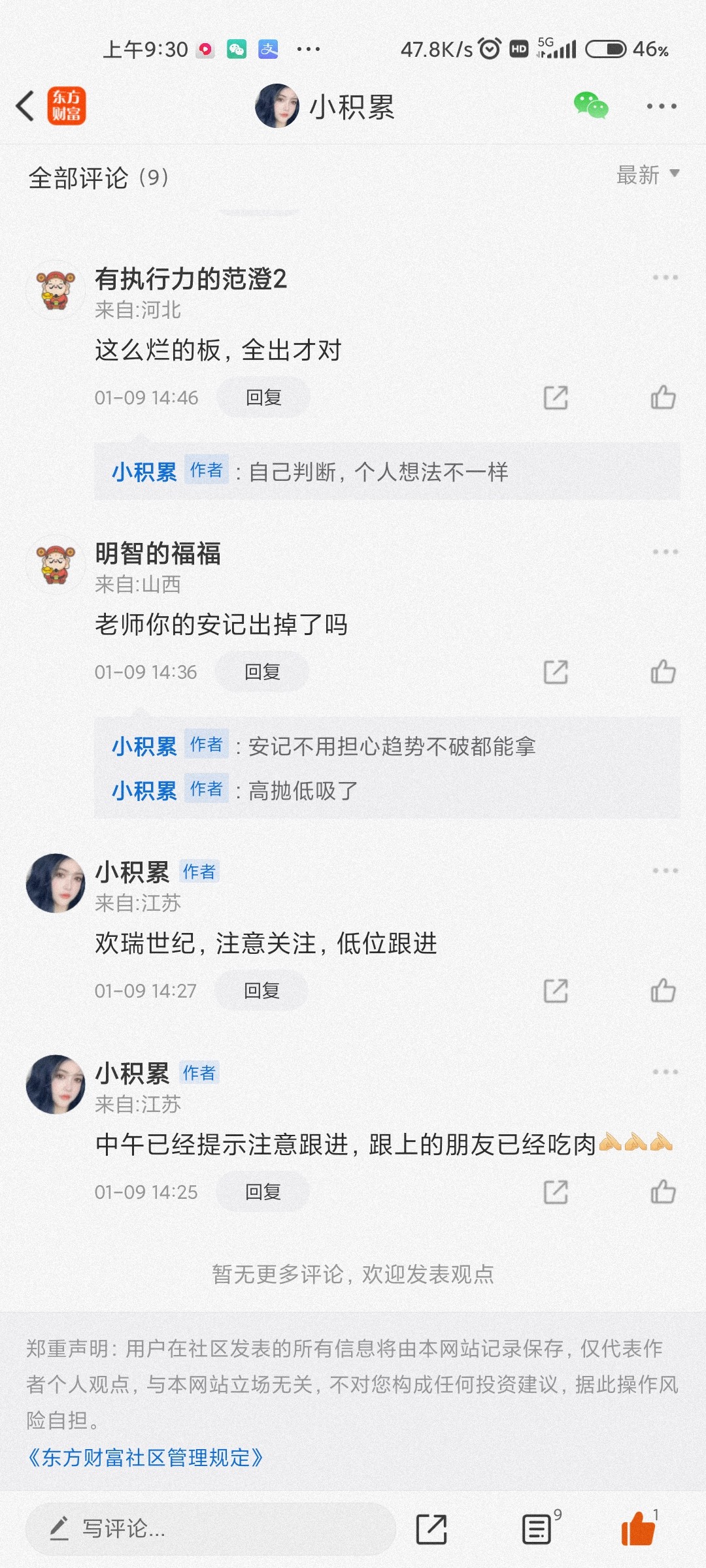 温馨提示: 1.根据《证券法》规定,禁止编造、传播虚假信息或者误导性信息,扰乱证券市场;2.用户在本社区发表的所有资料、言论等仅代表个人观点,与本网站立场无关,不对您构成任何投资建议。用户应基于自己的独立判断,自行决定证券投资并承担相应风险。《东方财富社区管理规定》