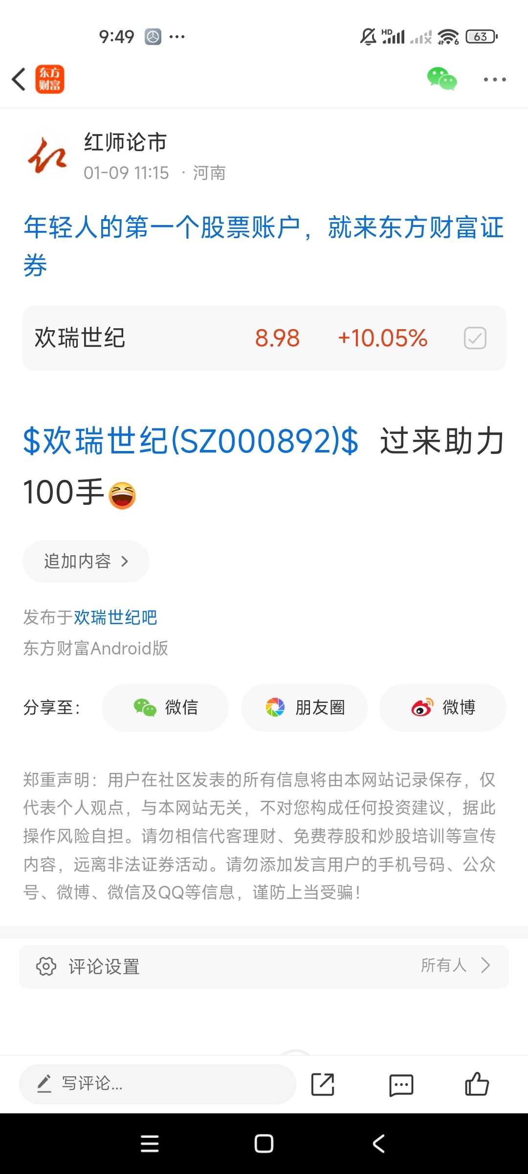 温馨提示: 1.根据《证券法》规定,禁止编造、传播虚假信息或者误导性信息,扰乱证券市场;2.用户在本社区发表的所有资料、言论等仅代表个人观点,与本网站立场无关,不对您构成任何投资建议。用户应基于自己的独立判断,自行决定证券投资并承担相应风险。《东方财富社区管理规定》