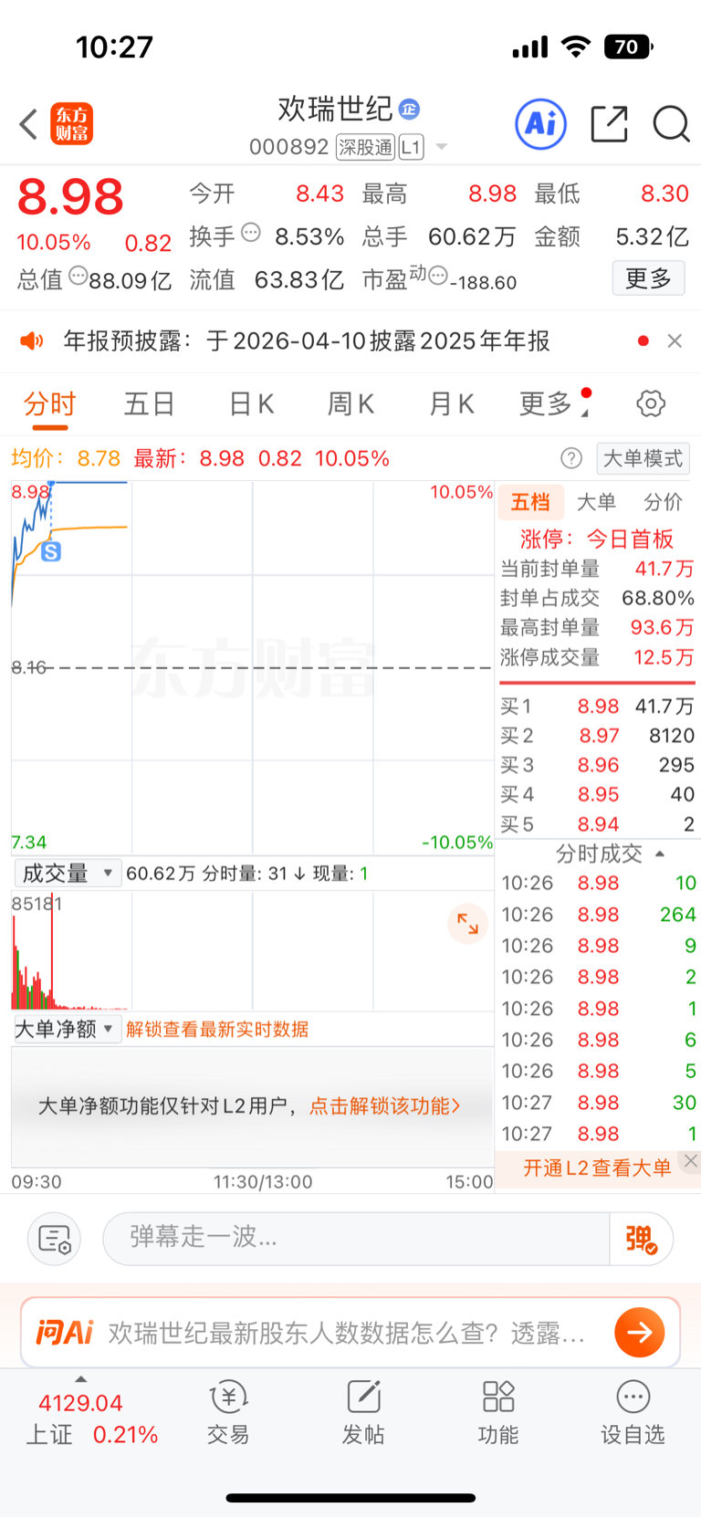 $欢瑞世纪(SZ000892)$ 卖飞了