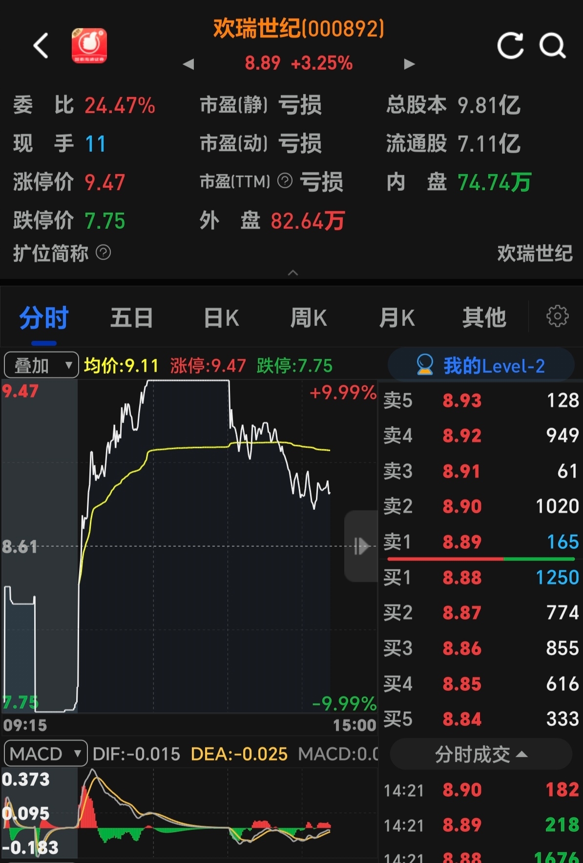 $欢瑞世纪(SZ000892)$ 我就觉得背离封板没啥好事