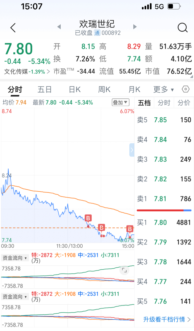 $欢瑞世纪(SZ000892)$ 买了三成仓