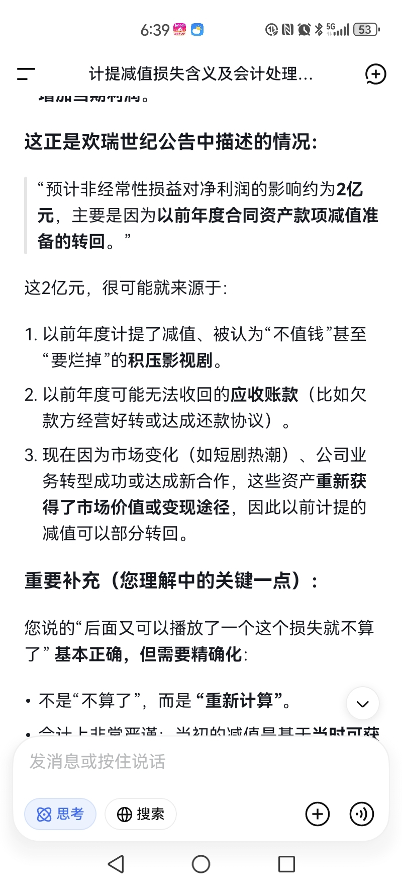 $欢瑞世纪(SZ000892)$ 说白了,就是有积压的剧一直没播,提前算损失了。比如 《天下长安》 如果后面播出就要另外算了。