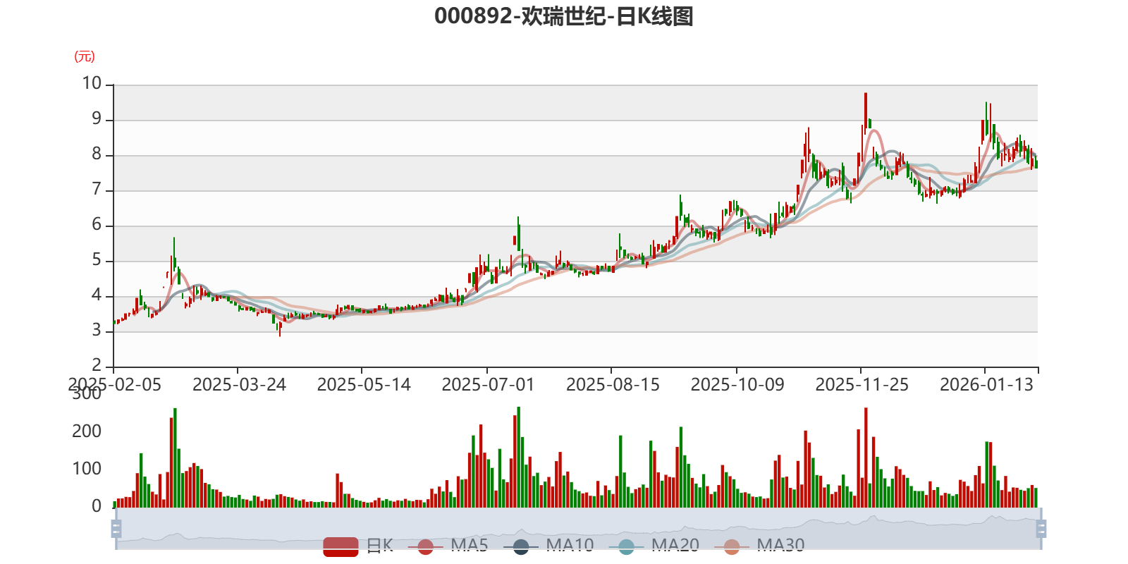 中证智能财讯欢瑞世纪(000892)1月30日晚间披露2025年度业绩预告,预计2025年实现营业收入5.85亿元,同比增长52%;归母净利润亏损2亿元,上年同期亏损2.41亿元;扣非净利润亏损4亿元,上年同期亏损2.2亿元;基本每股收益-0.21元/股。以1月30日收盘价计算,欢瑞世纪目前市盈率(TTM)约为-37.47倍,市净率(LF)约8.87倍,市销率(TTM)约12.81倍。