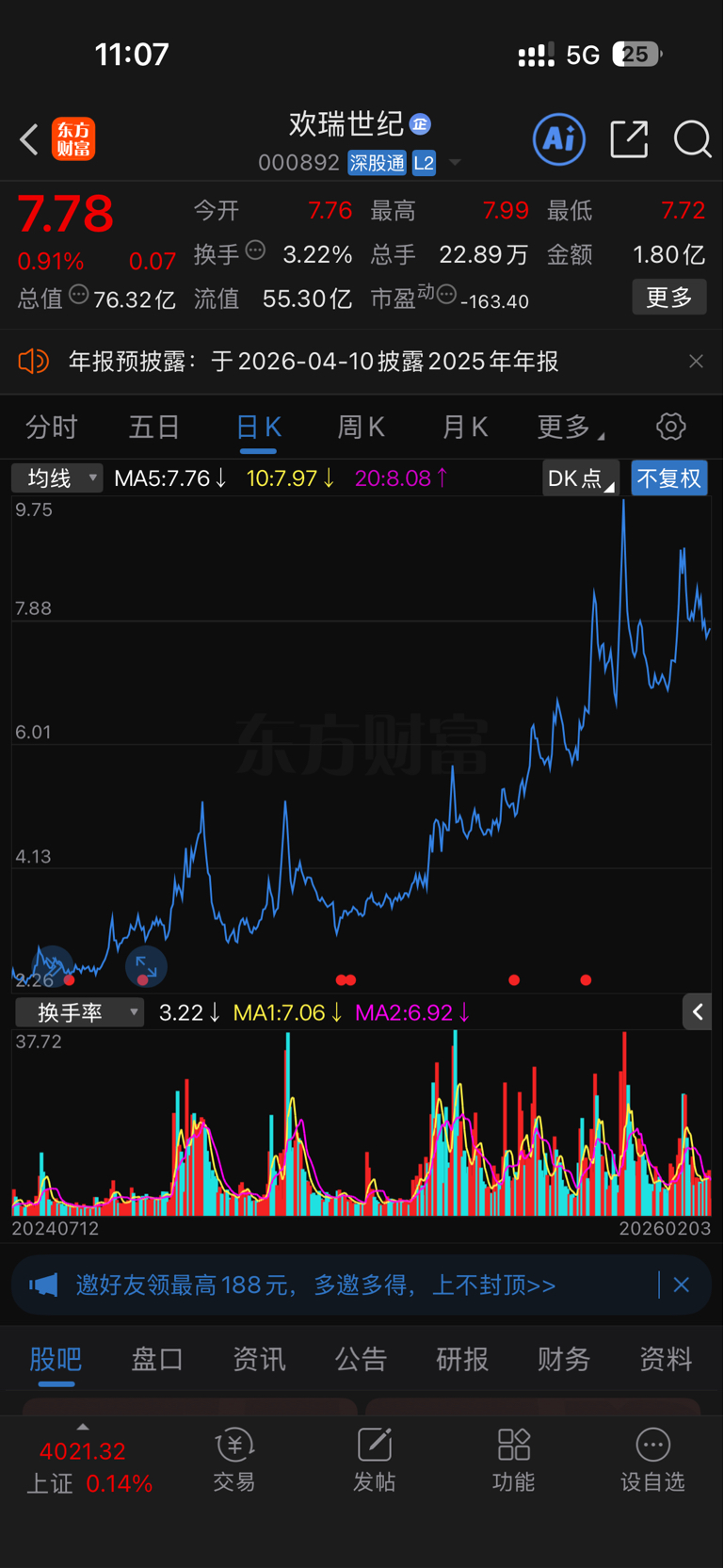 $欢瑞世纪(SZ000892)$ 喷欢瑞的韭菜也不看看一年多翻了4倍多有几个,自己高位接盘跟风炒作纯属活该,就喜欢跟你们这种低智群体玩