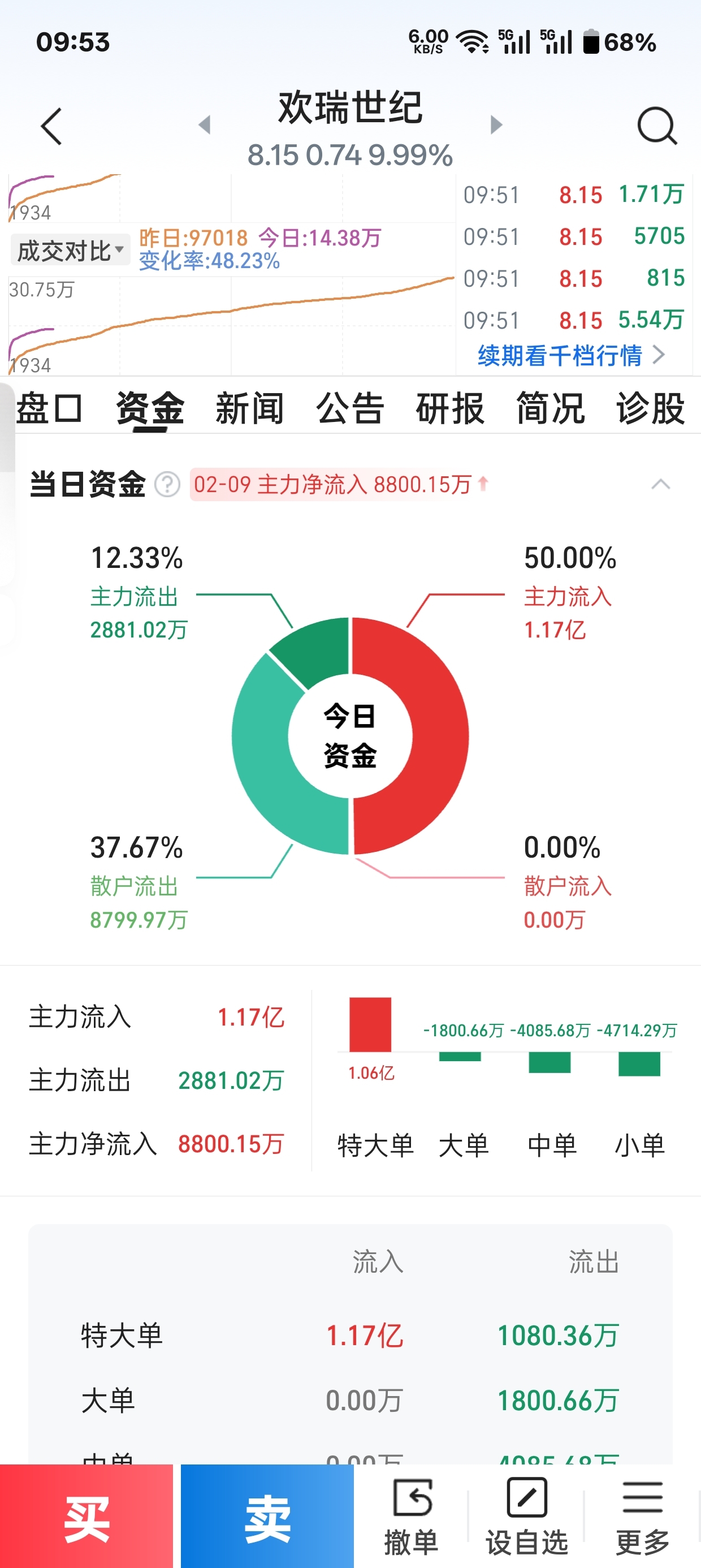 $欢瑞世纪(SZ000892)$ 买进的没有一个散户,全是主力庄家