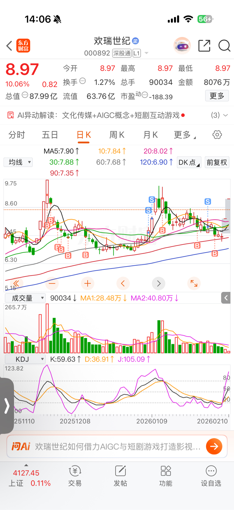 $欢瑞世纪(SZ000892)$ 典型散户老是追高,还好是回本了