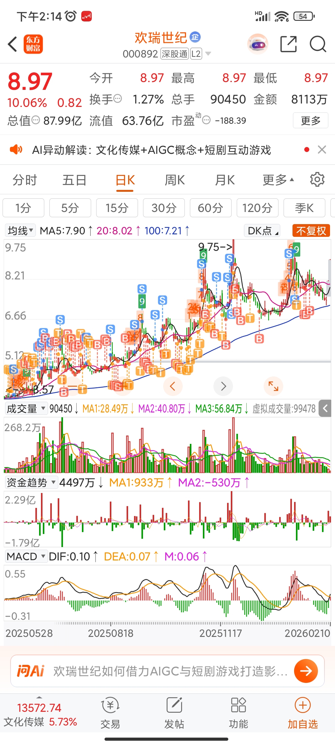 $欢瑞世纪(SZ000892)$ 一直没有管它,底仓基本没看,也没动,