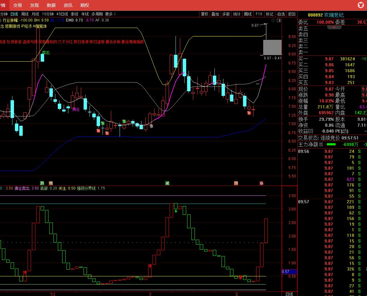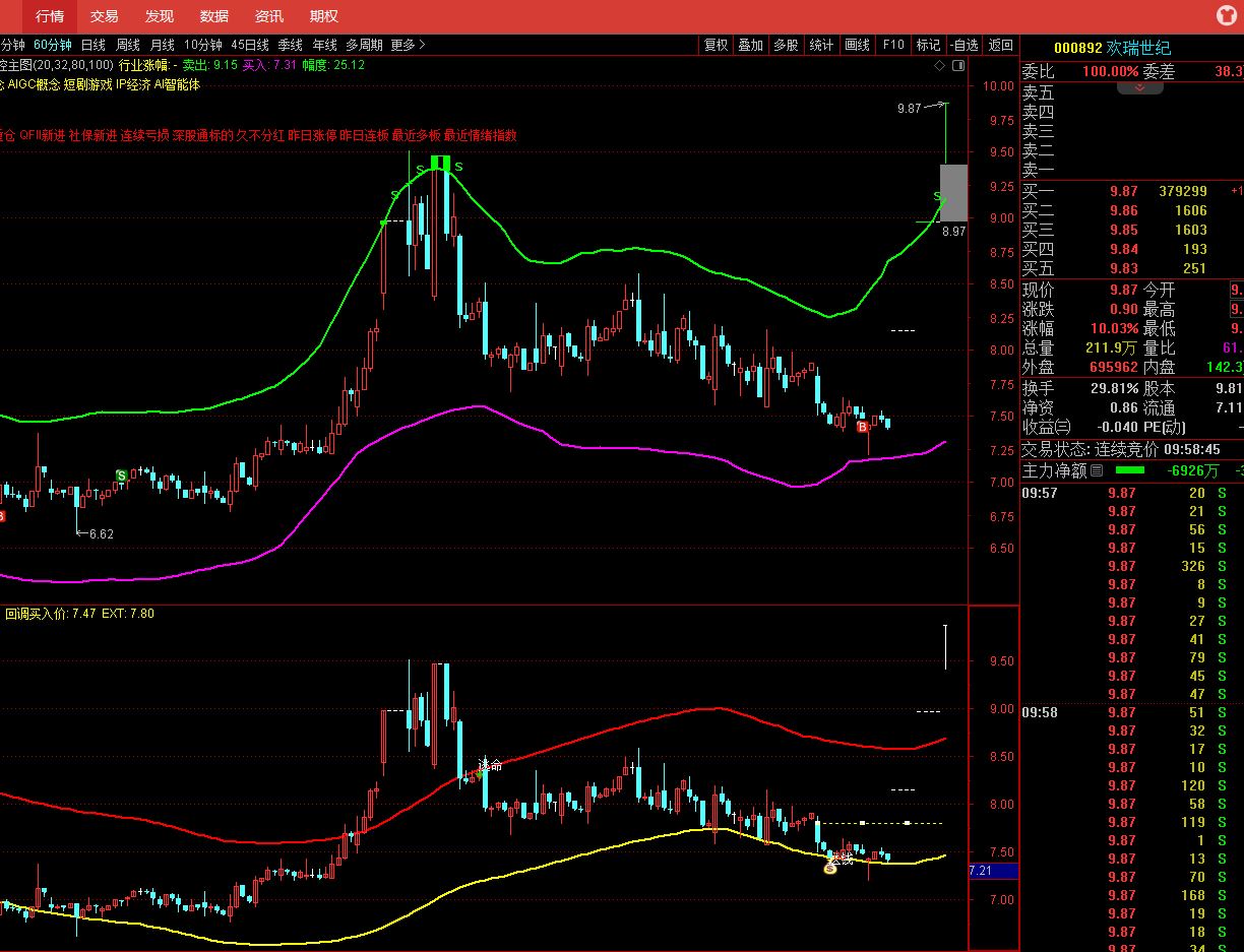 这个票行情结束了吗?板块看,排名第一已经变成倒数第二。这个票从60分钟看,已经突破顶部位置,短线已经处在卖出的点位了,但这只是在60分钟来说的。在日K线看,这只票今天放量,确实有主力在跑路,这是事实,但我认为行情仍没有结束。从指标图上看,至少明天仍会向上冲击,后面会在高位震荡,可以考虑择机卖出。个人观点,不作为操盘依据,仅供参考!!!