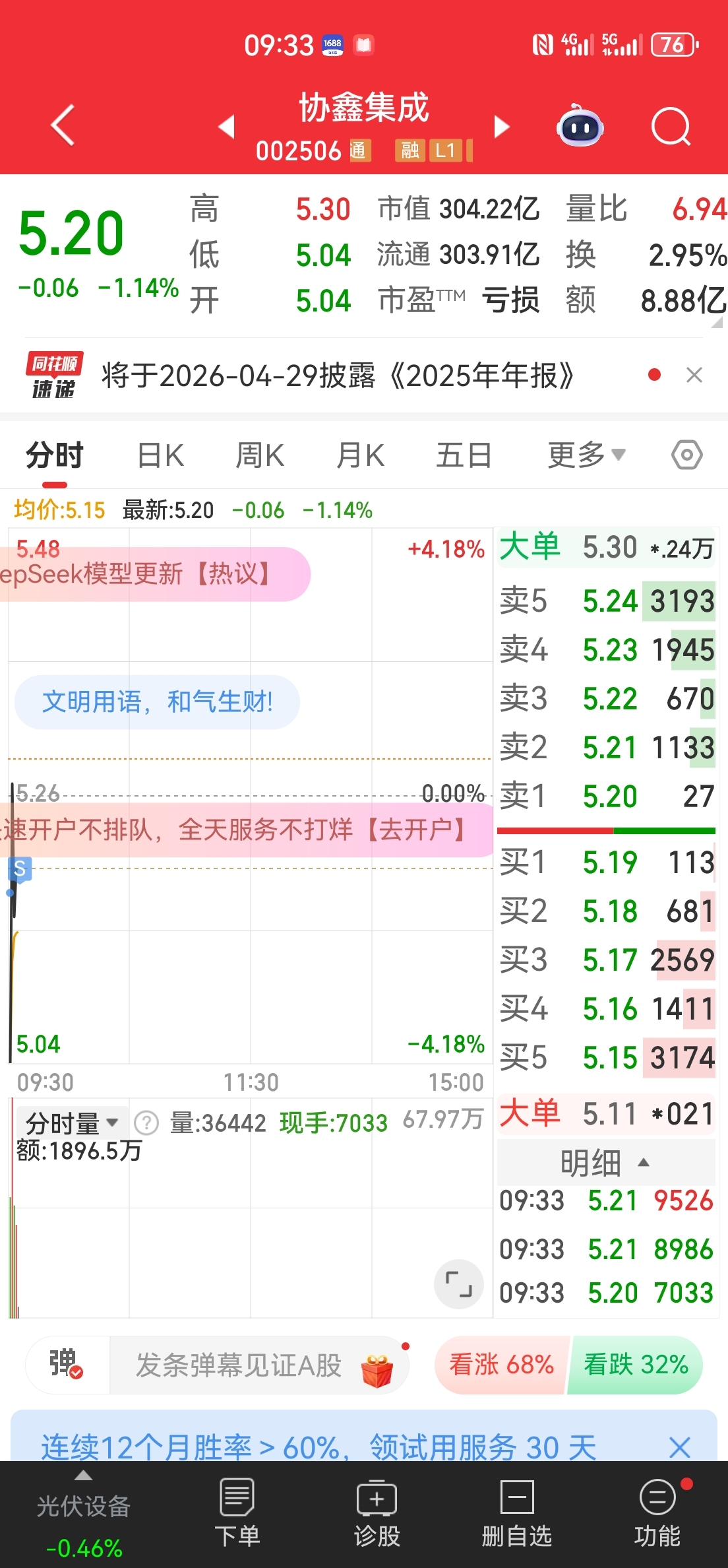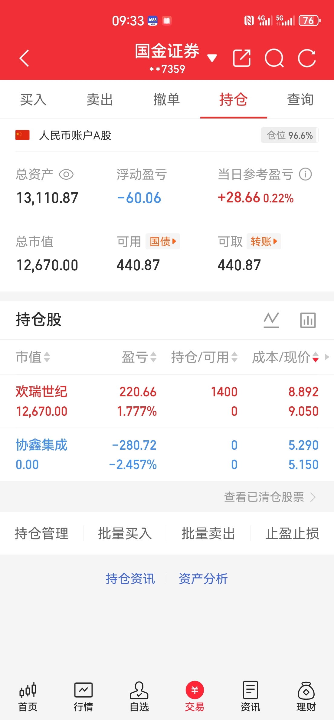 $欢瑞世纪(SZ000892)$ 一万到一百万第81天,协鑫-1走了,地板买了欢瑞世纪