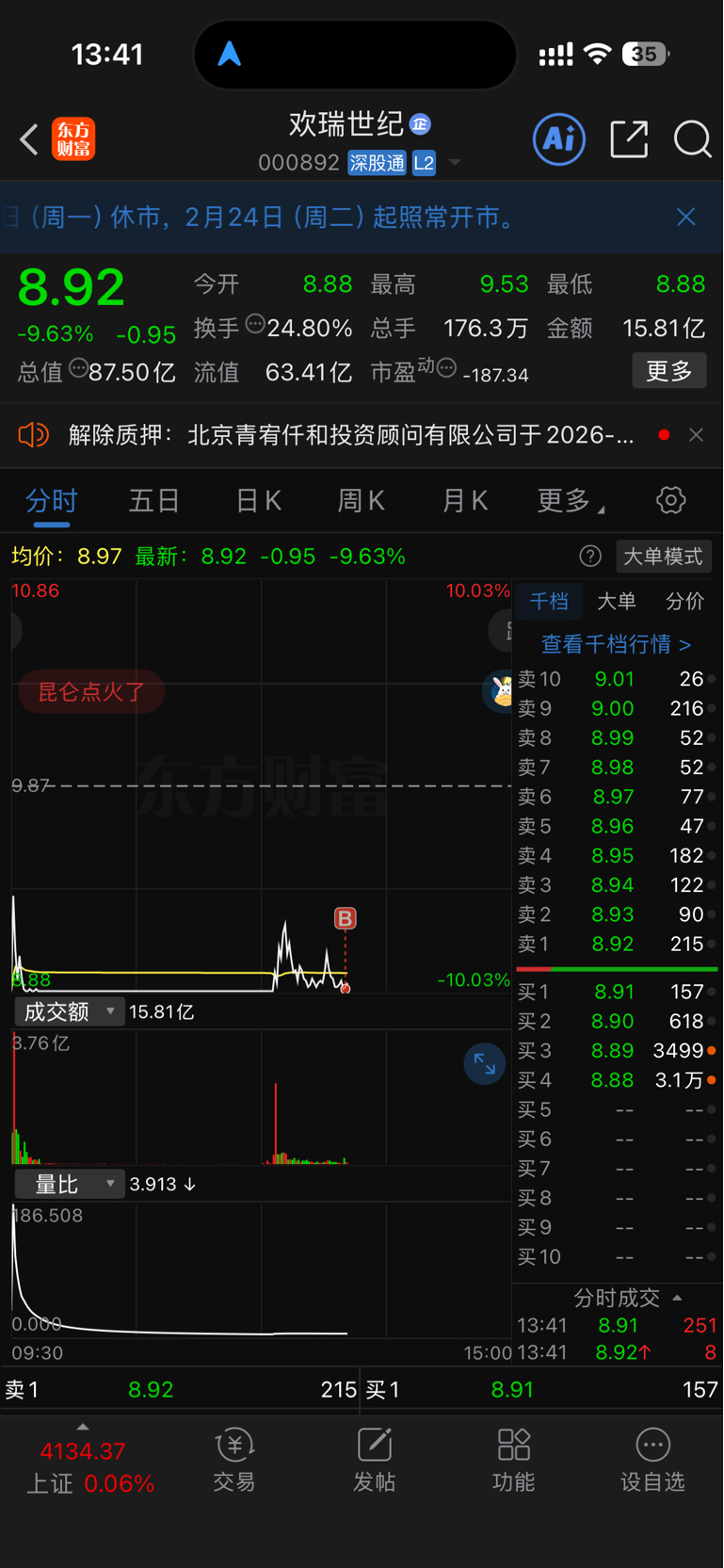 $欢瑞世纪(SZ000892)$