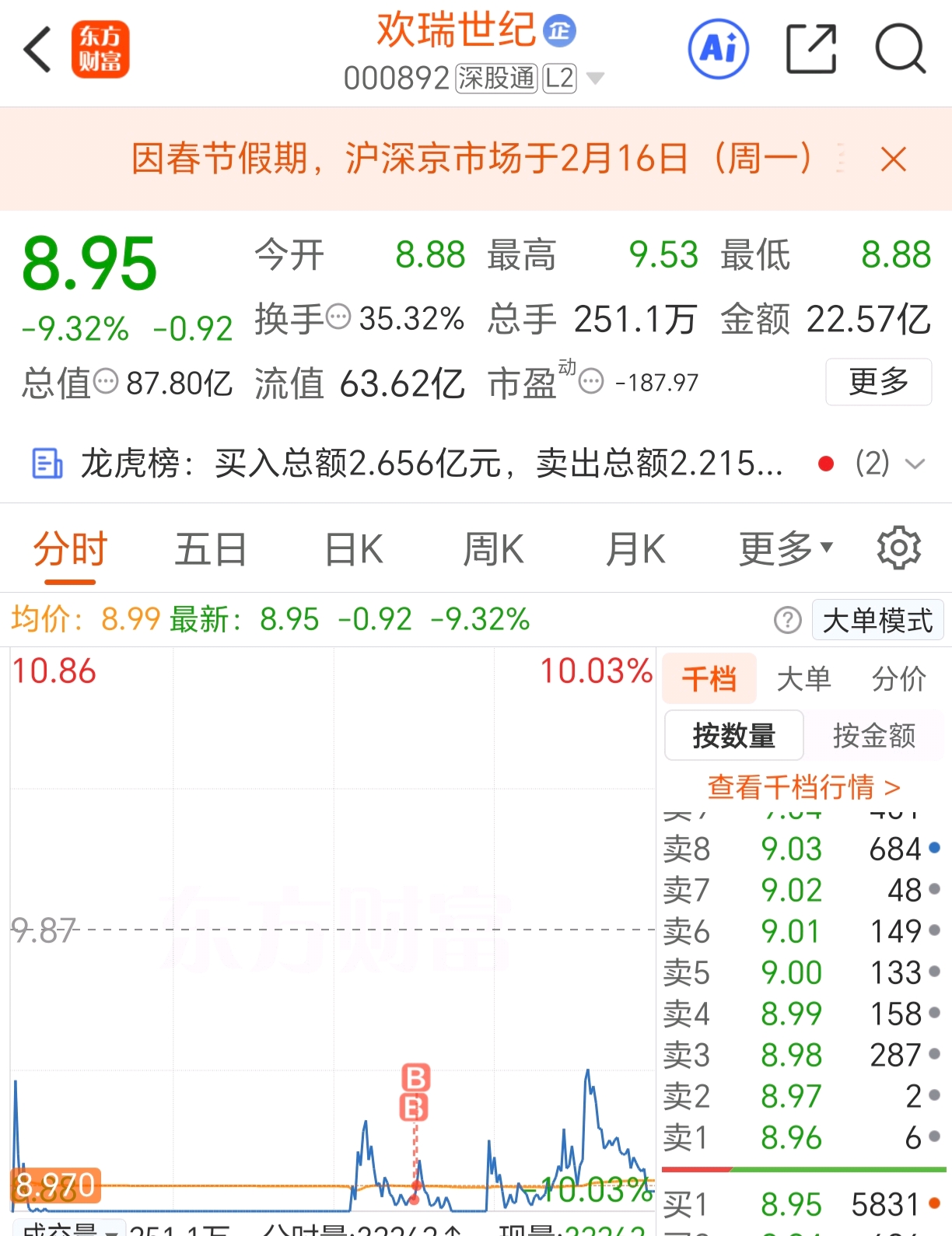 $欢瑞世纪(SZ000892)$ 今天建仓,迎接春节晚会