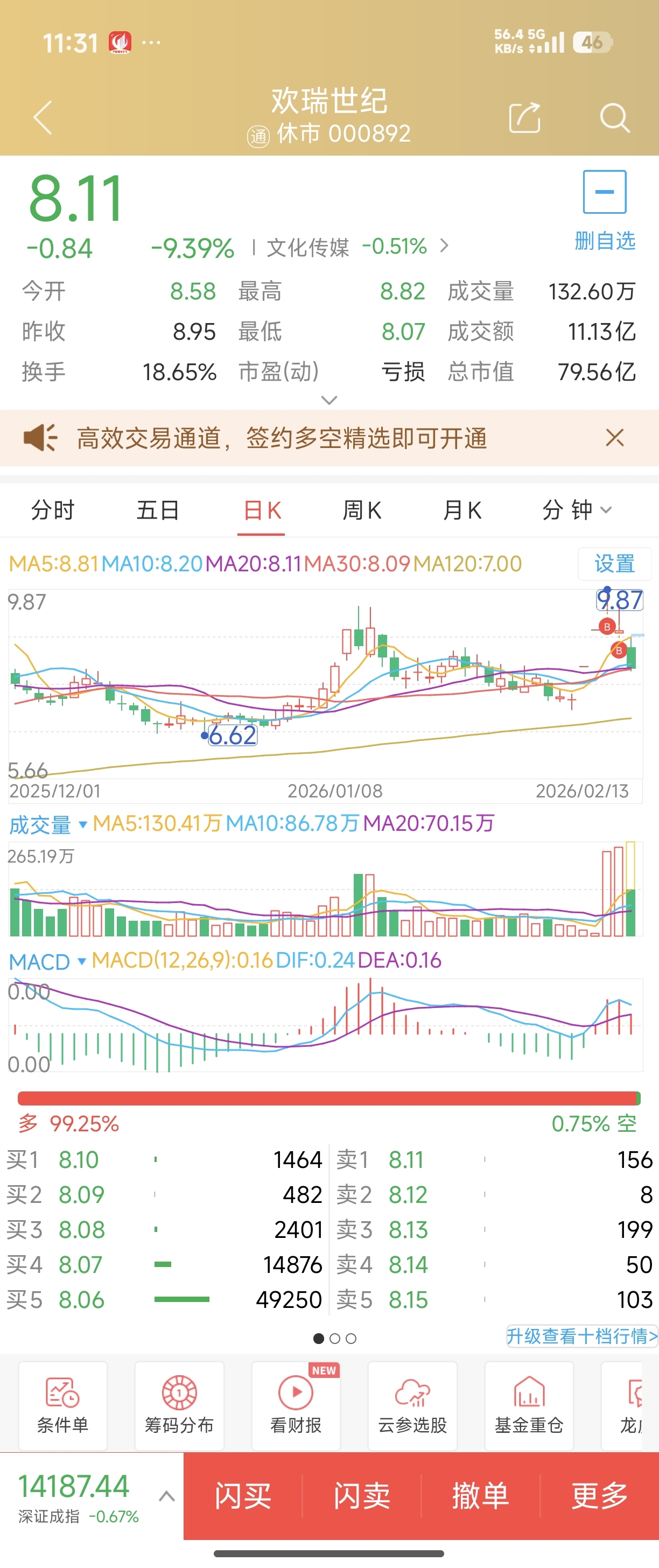 $欢瑞世纪(SZ000892)$ 跟大曾子一样的买点 仓位也十几万