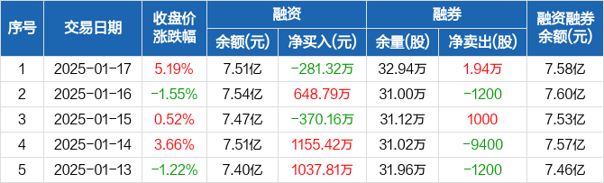 亚钾国际:融资净偿还281.32万元,融资余额7.51亿元(01-17)