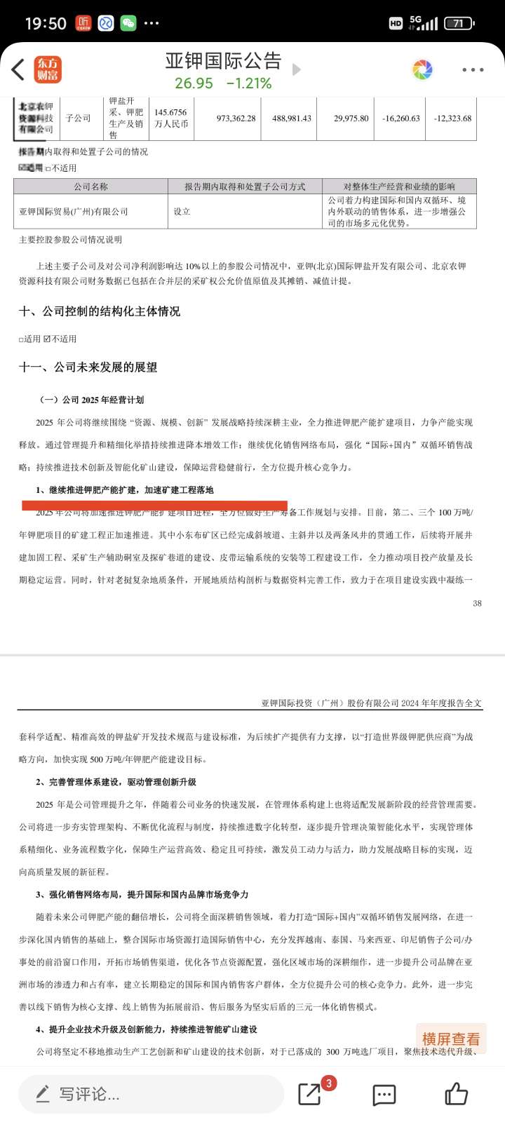 $亚钾国际(SZ000893)$ 说实话,对25Q1业绩是有预期的。但真不是关注的核心点。