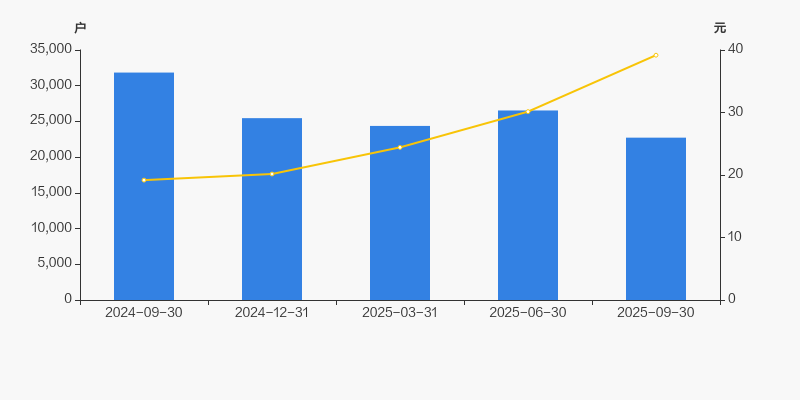 2024年9月30日至今,公司股东户数显著下降,区间跌幅为28.62%。2024年9月30日至2025年9月30日区间股价上涨104.22%。