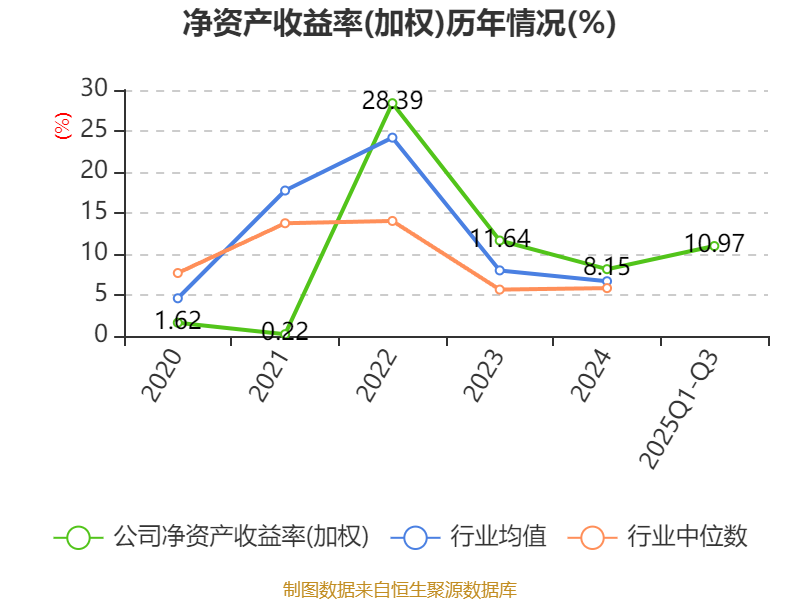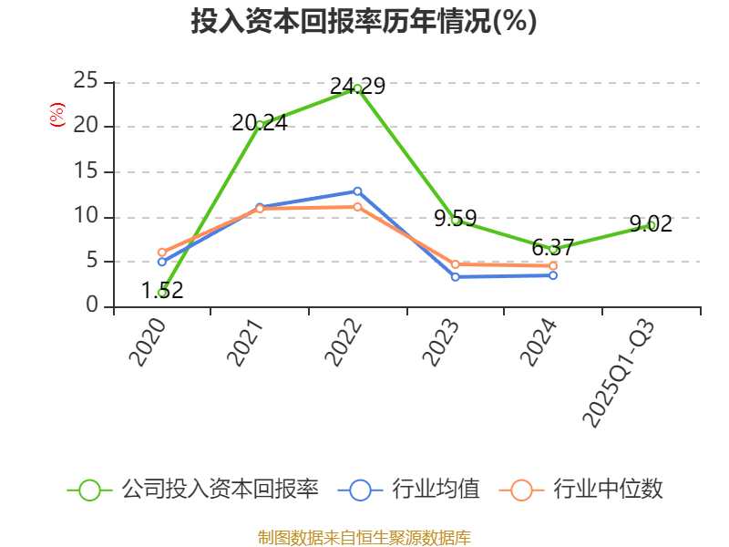盈利能力方面, 2025年前三季度公司加权平均净资产收益率为10.97%,同比上升6.44个百分点。公司2025年前三季度投入资本回报率为9.02%,较上年同期上升5.46个百分点。