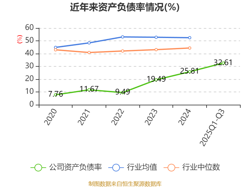 负债重大变化方面,截至2025年三季度末,公司长期应付款合计占公司总资产的9.19%,上年末为0;应付票据及应付账款较上年末减少13.42%,占公司总资产比重下降1.44个百分点;长期借款较上年末减少9.76%,占公司总资产比重下降1.28个百分点;一年内到期的非流动负债较上年末增加479.06%,占公司总资产比重上升1.05个百分点。