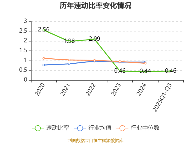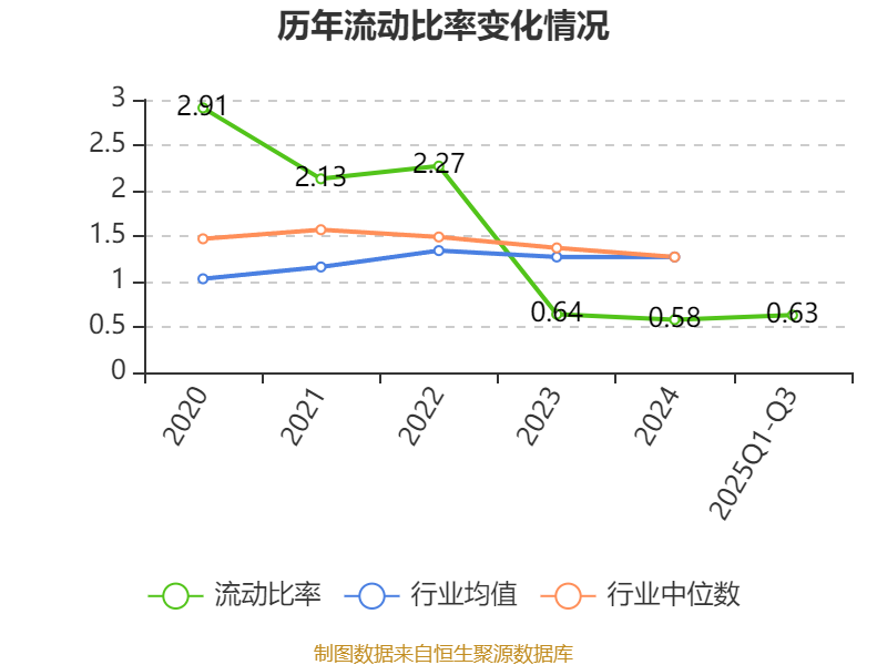 2025年前三季度,公司流动比率为0.63,速动比率为0.46。