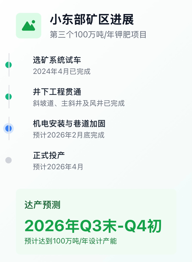 $亚钾国际(SZ000893)$ 3号井和小东布实际年产能设计均远超100WT,小东布矿区安装更为先进的第三代掘采设备并且安装备用传送带。
