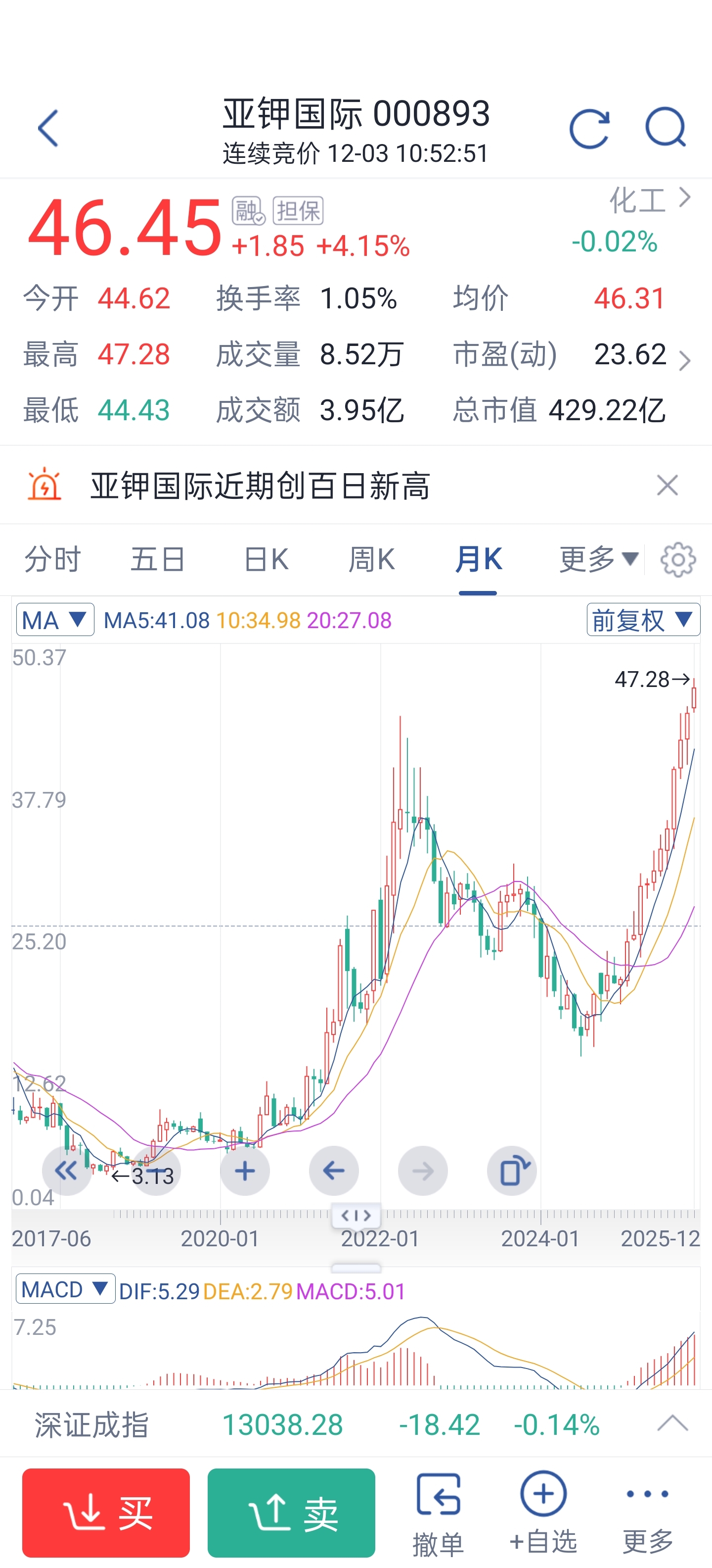 $亚钾国际(SZ000893)$ 惊呆了,这股月线12连阳,谁拿长线的真幸福啊