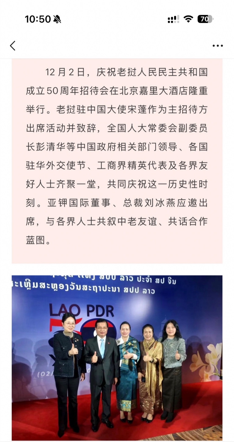 $亚钾国际(SZ000893)$ 冰燕姐姐参加老挝gq50周年招待会