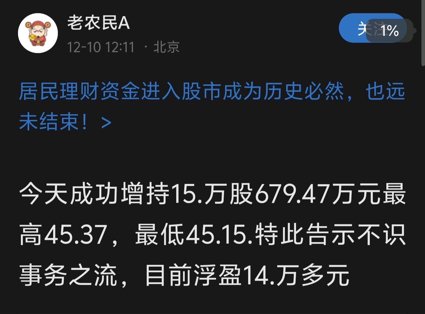 郑重声明:用户在财富号/股吧/博客等社区发表的所有信息(包括但不限于文字、视频、音频、数据及图表)仅代表个人观点,与本网站立场无关,不对您构成任何投资建议,据此操作风险自担。请勿相信代客理财、免费荐股和炒股培训等宣传内容,远离非法证券活动。请勿添加发言用户的手机号码、公众号、微博、微信及QQ等信息,谨防上当受骗!