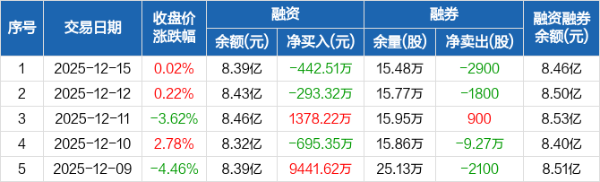 亚钾国际:融资净偿还442.51万元,融资余额8.39亿元(12-15)