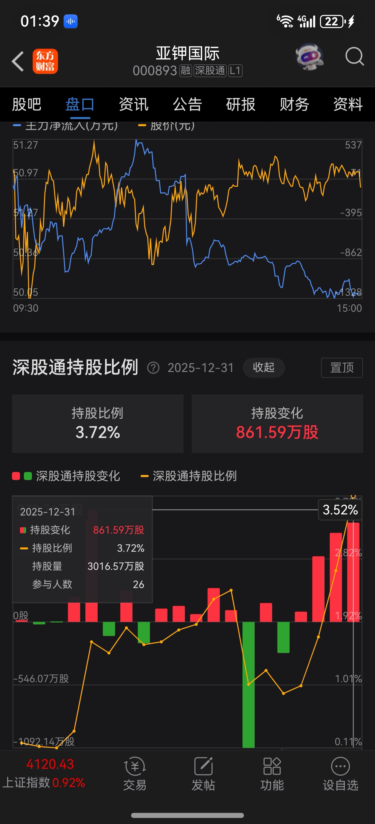 $亚钾国际(SZ000893)$ 深港通4季度继续大幅增仓