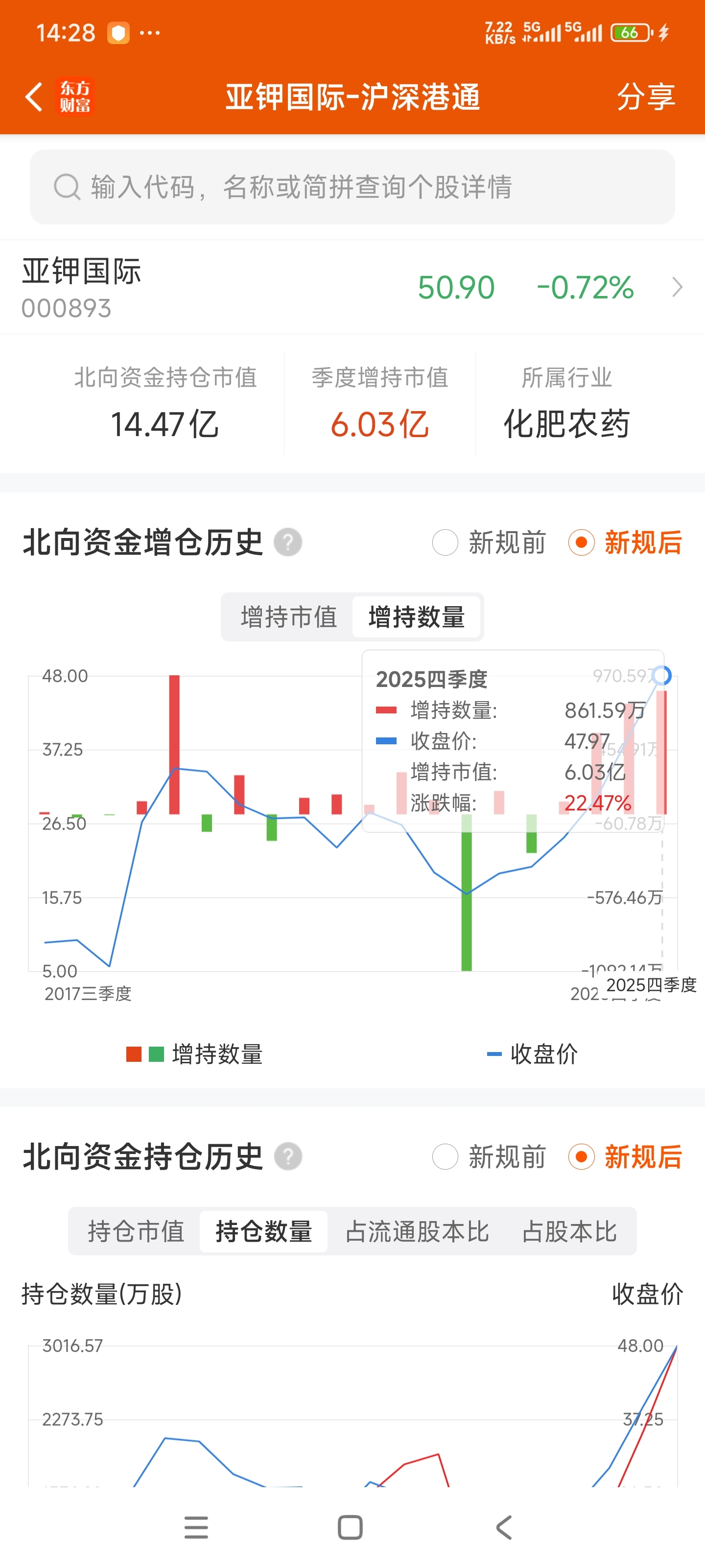 $亚钾国际(SZ000893)$ 第四季度深股通又加仓了近1000万股亚钾