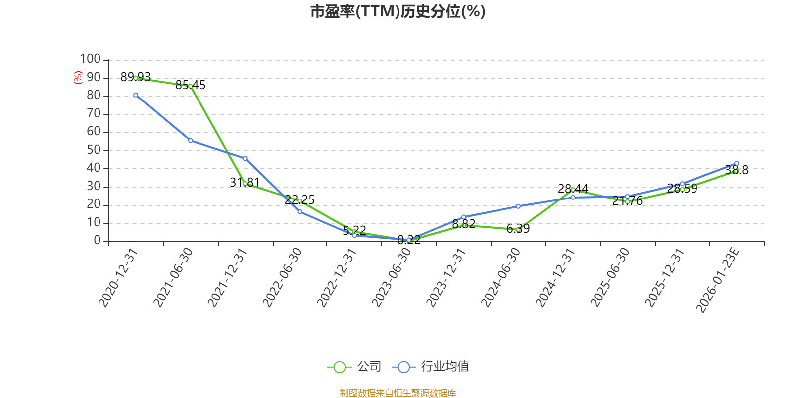以本次披露业绩预告均值计算,公司近年市盈率(TTM)图如下所示: