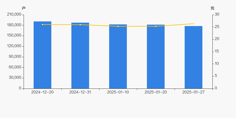 2024年12月20日至今,公司股东户数有所下降,区间跌幅为6.89%。2024年12月20日至2025年1月27日区间股价上涨1.27%。