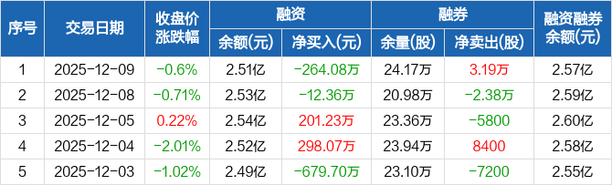 双汇发展:融资净偿还264.08万元,融资余额2.51亿元(12-09)