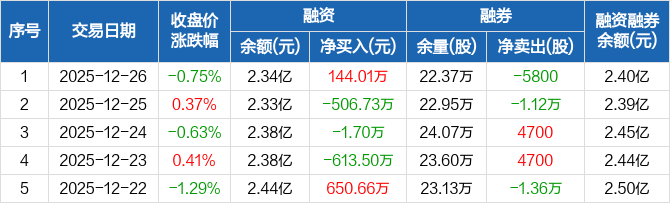 双汇发展:融资净买入144.01万元,融资余额2.34亿元(12-26)
