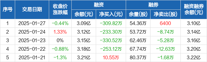 鞍钢股份:连续4日融资净偿还累计1126.77万元(01-27)
