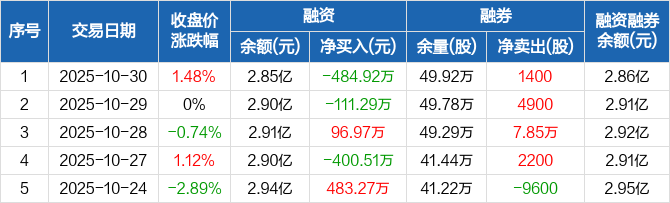 鞍钢股份:融资净偿还484.92万元,融资余额2.85亿元(10-30)