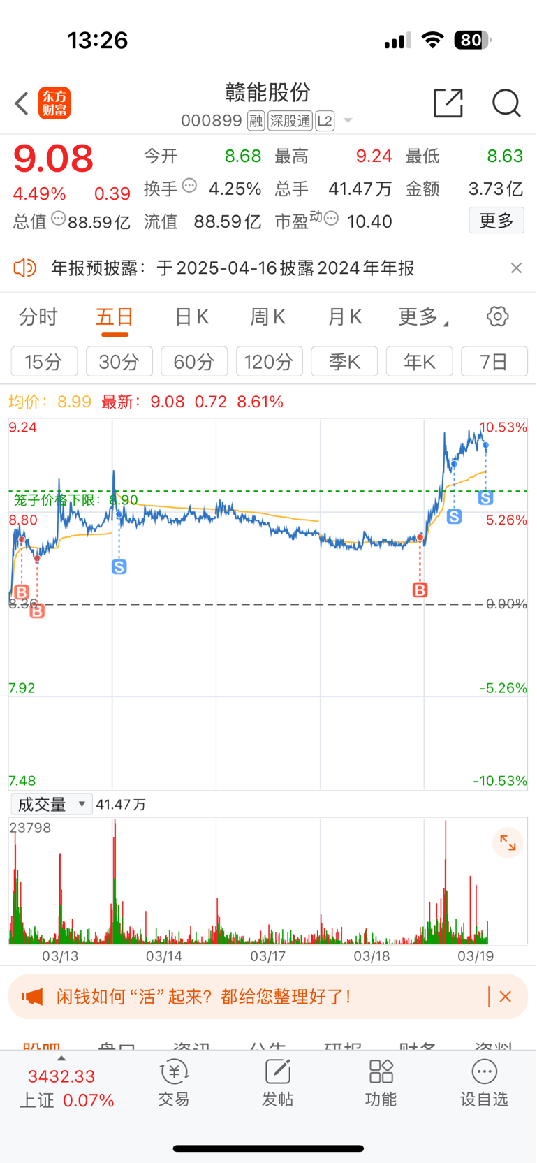 $赣能股份(SZ000899)$ 走啦,下次还来。等五日线追上来吧