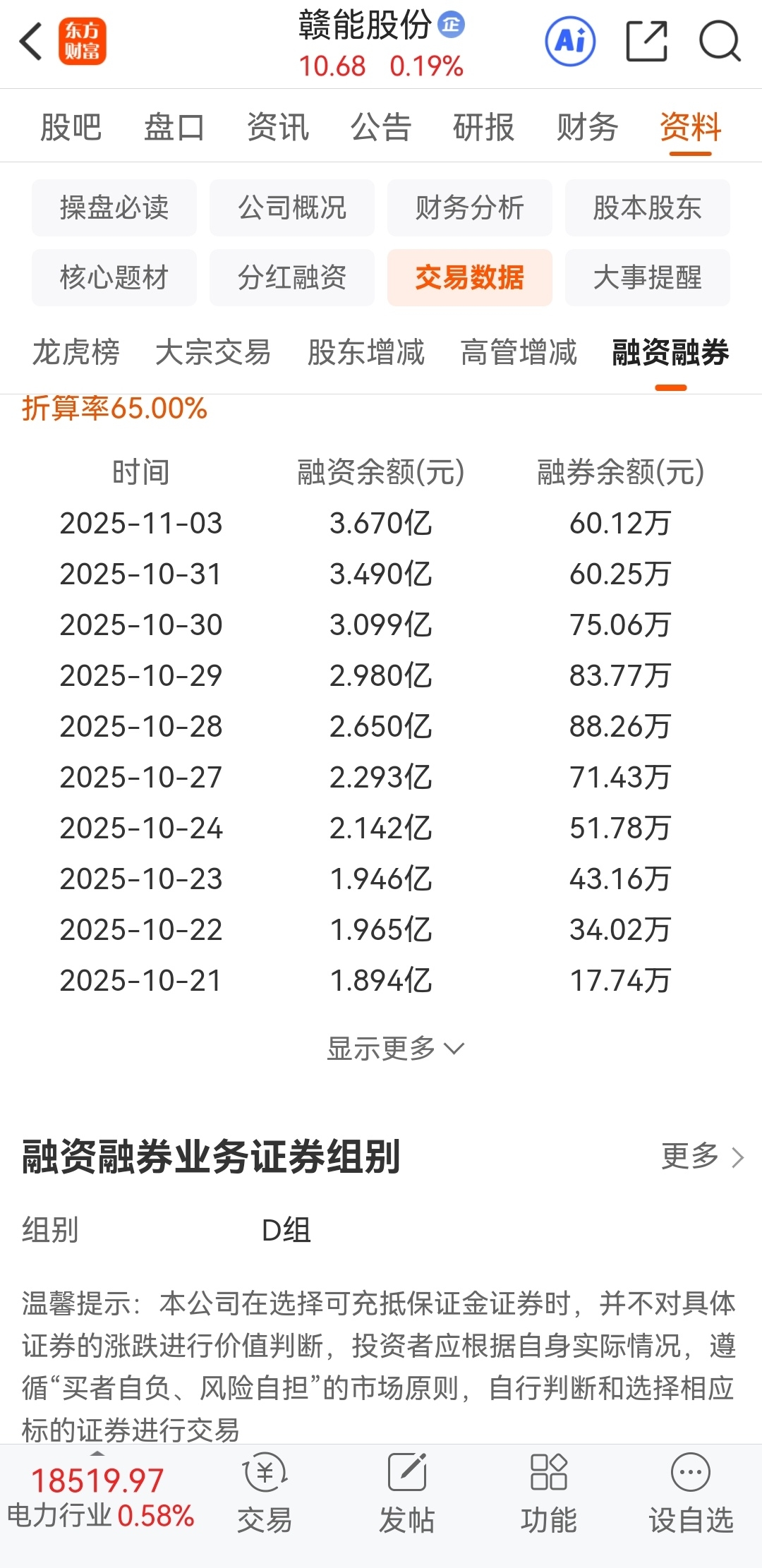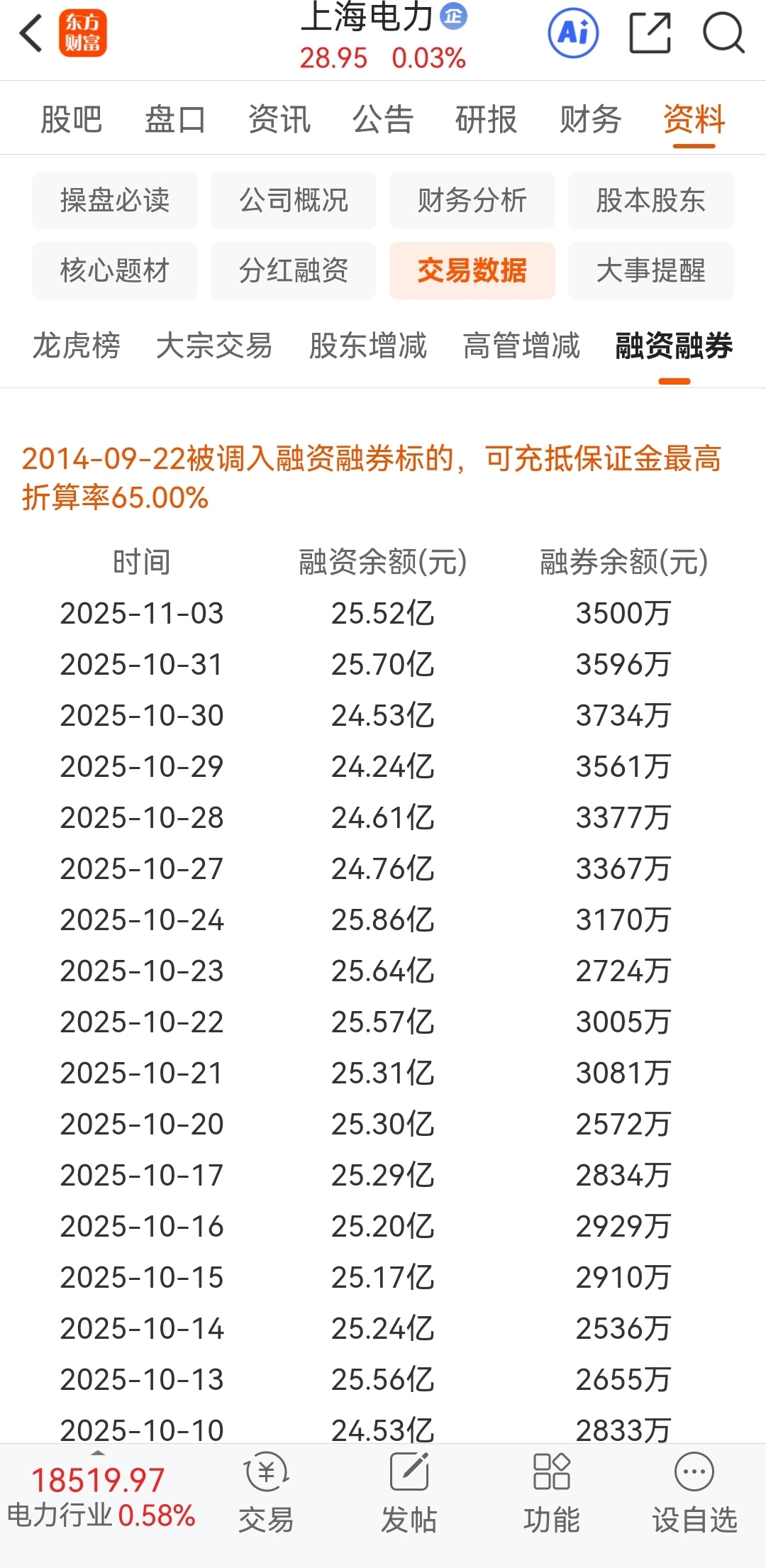 按昨晚收盘数据,赣能股份融资余额占总市值的比例为3.53%,上海电力融资余额占总