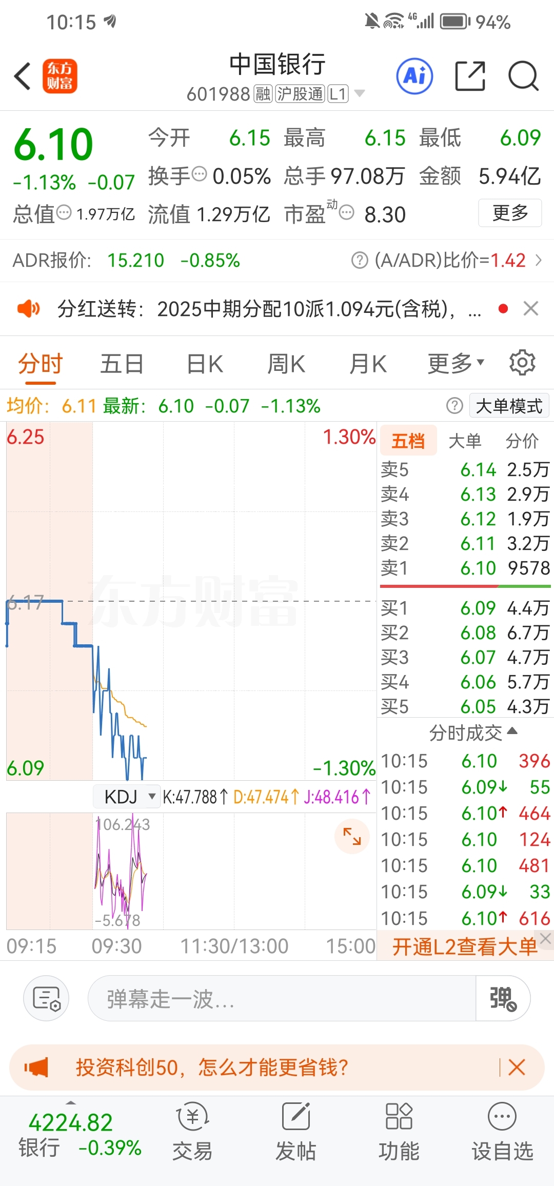 银行股跌下来,其他股日子好过些!大盘指数4000,很多散户连点羹都喝不到