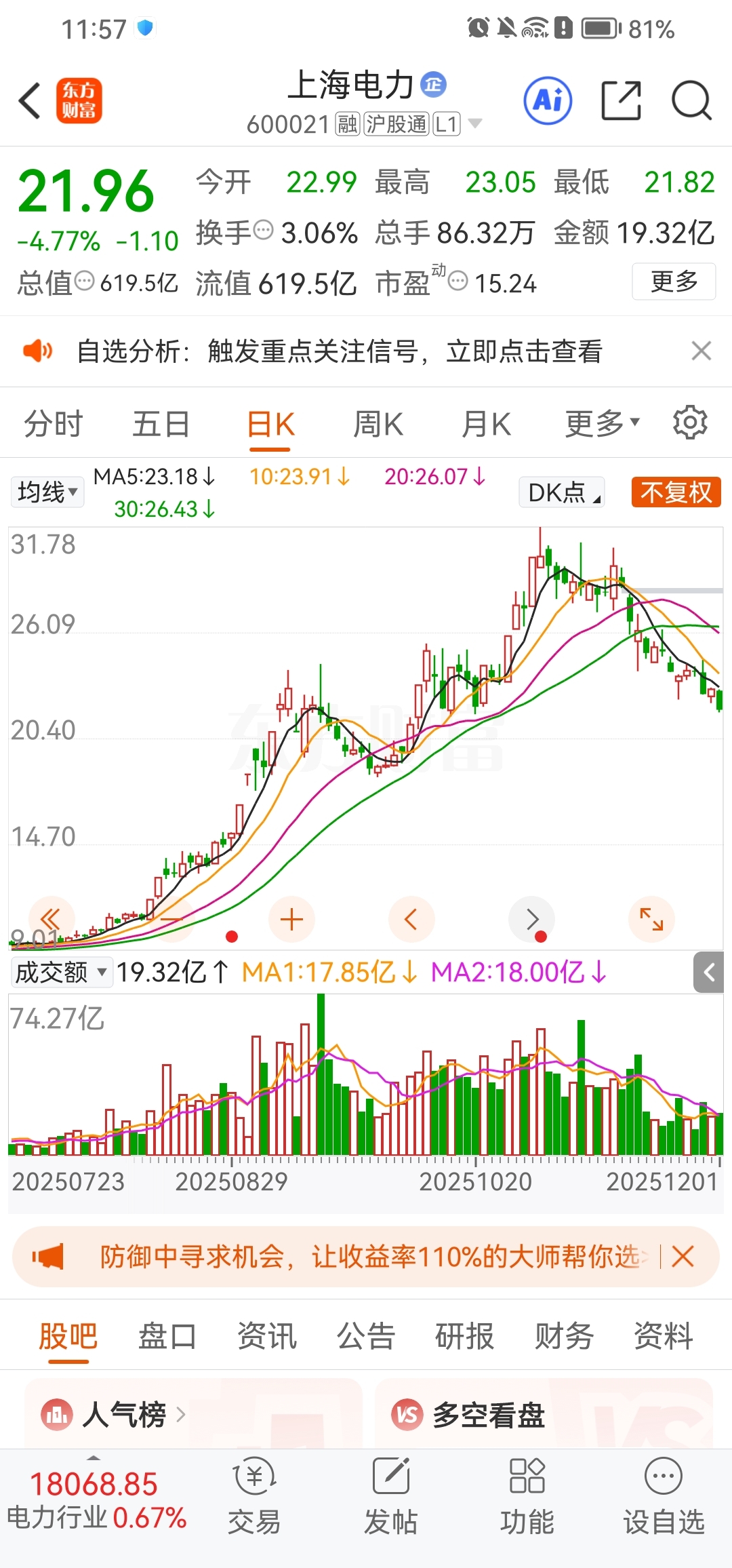 炒高的股票,先慢都是要下来的!上海电力——你的估值不能超赣能股份太多啊,你正常估