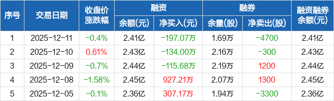 赣能股份:连续3日融资净偿还累计446.75万元(12-11)
