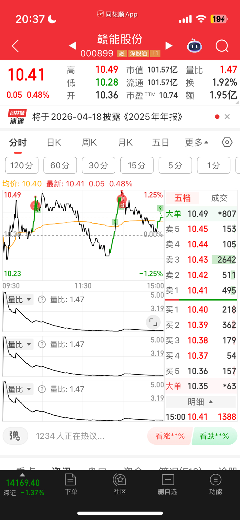 $赣能股份(SZ000899)$ 被我买崩今天