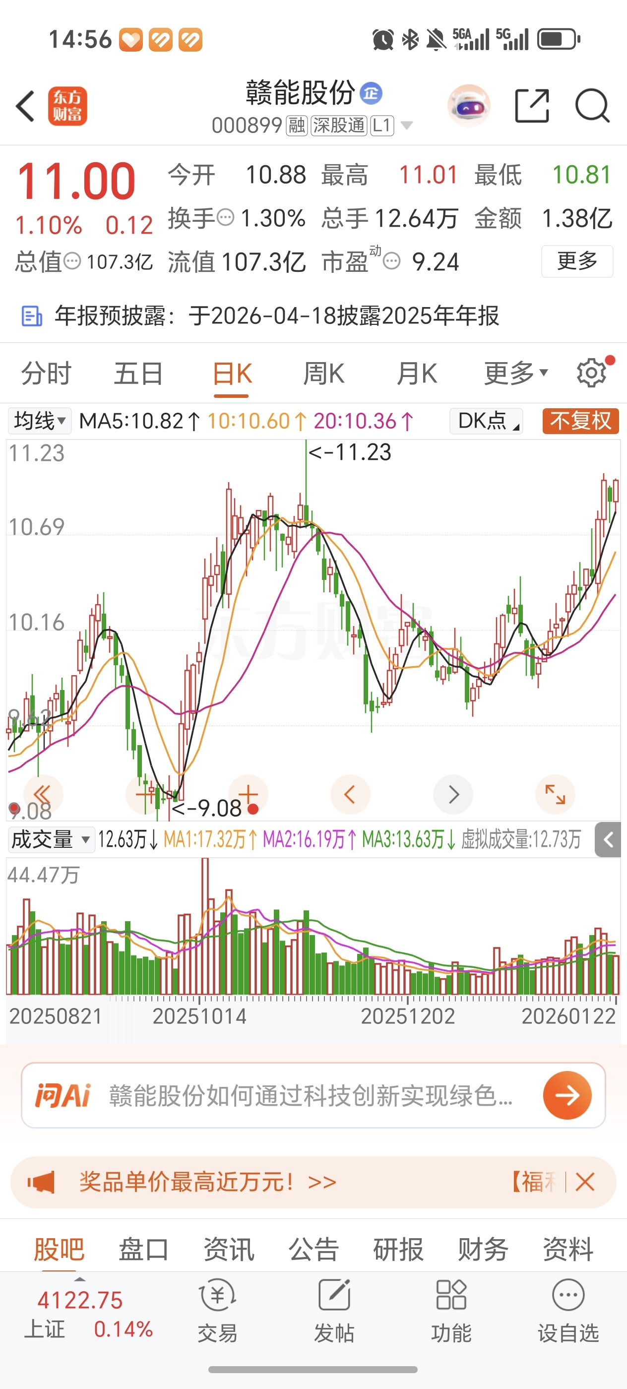 $赣能股份(SZ000899)$ 漂亮,站稳11关口!