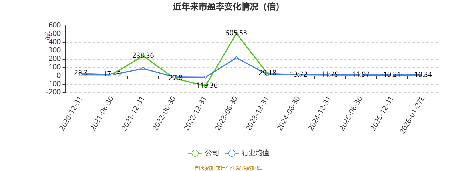 以本次披露业绩预告均值计算,公司近年市盈率(TTM)图如下所示: